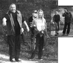 Veikko Nevala (vas.), Maria Salmela ja Vesa Kantola tuulettivat hyvin menneiden kisojen jälkeen.