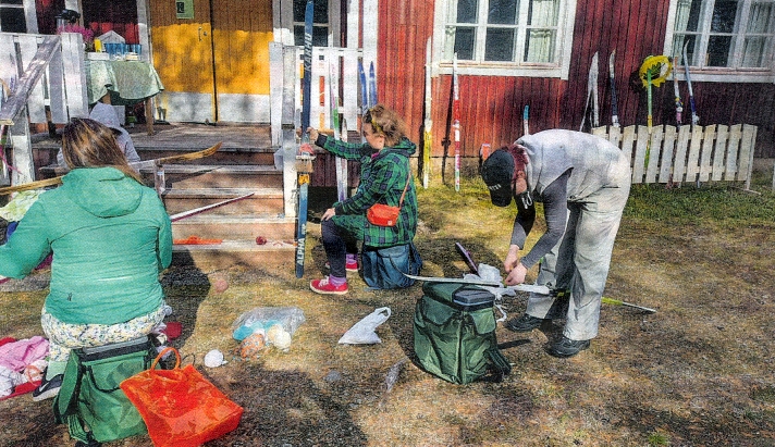 Häävieraita tuunattiin Saija-Pirtillä ennen teoksen pystyttämistä.