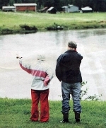 Eija ja Esko Nissinen ihailevat Kuolajoen maisemaa.