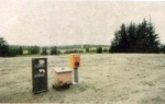 Kauppa paloi viime vuonna. Jäljelle jäi vain postilaatikko sekä roskakori.
