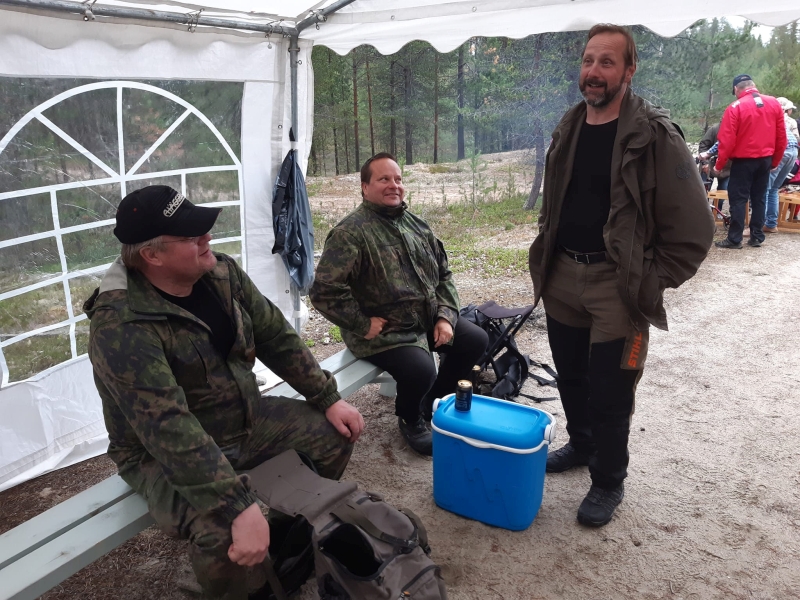 Voiton lopulta vienyt Saijan Vauhti eli Pertti Saariniemi (vasemmalla), Petri Saariniemi ja Jarko Kallioinen odottavat pelivuoroa.