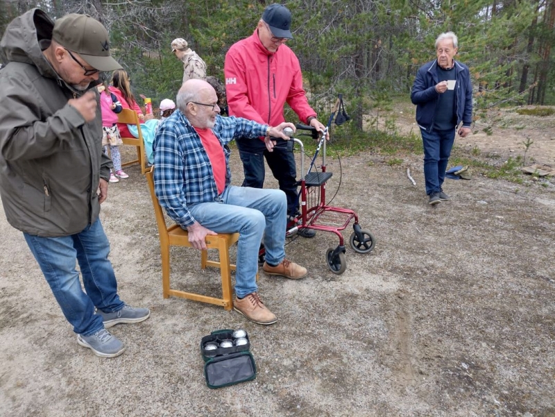 Saijan Vauhti vei voiton maailmojen välisessä petankkiottelussaSaijan kylällä Sallassa järjestetyssä hyväntuulisessa petankkikisassa oli myös kansainvälistä edustusta. Lauantaina 22. heinäkuuta pelattiin Saijalla Kaunisharjun maastossa jälleen maailmojen välisestä petankin mestaruudesta. Oli sen verran viileää, että sääsket eivät paljoa haitanneet. Kolmantena joukkueena oli Huutoaavan Humpuukit: Lassi Törmänen, Toni Saariniemi ja Samuli Ikäläinen. Neljäs joukkue oli Valioheittäjät: Pentti ja Jukka Ylitalo ja Heidi Mattila. Sitten tuli Saijan Vauhti, jonka nimeksi makusteltiin ensin Ja-Pe-Pe nimeä, mutta jo talvisodan evakosta palatessa keksitty Saijan Vauhti kuitenkin voitti. Voiton vei Saijan Vauhti, hopealle jäi niukasti Hongankolistajat ja pronssin nappasi Huutoaavan Humpuukit. Teksti ja kuvat: Erkki Yrjänheikki |