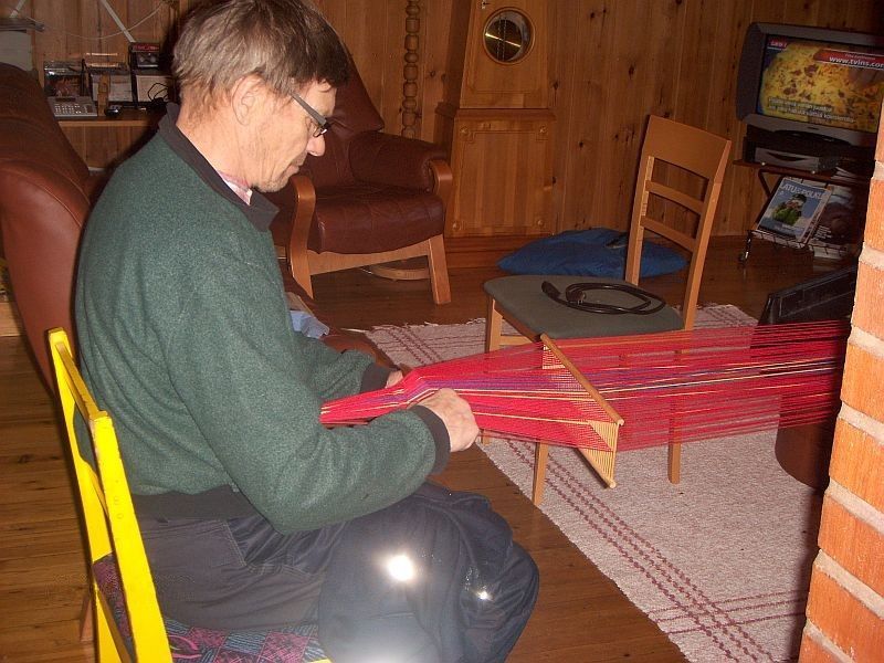 Antin taitoihin kuuluu myös paulojen teko. Kuvassa hänellä on juuri alussa uusin. Olemme miettineet, että hän voisi opettaa ko. taitoa muillekin. Tähän asiaan palaamme keväällä. Voisimme tehdä vaikka Saijan omilla väreillä.