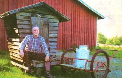 Pihapiirissä on myös vanha maitolaituri, johon Esko isäntä on istahtanut muistelemaan menneitä aikoja.