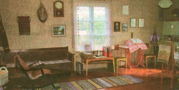 Ajatuksena oli, että pirtissä olisi sodanjälkeistä aikaa, alakerran kamarissa 60-lukua ja yläkerran kamarissa 70-luvun tunnelmaa ja kalusteita. |