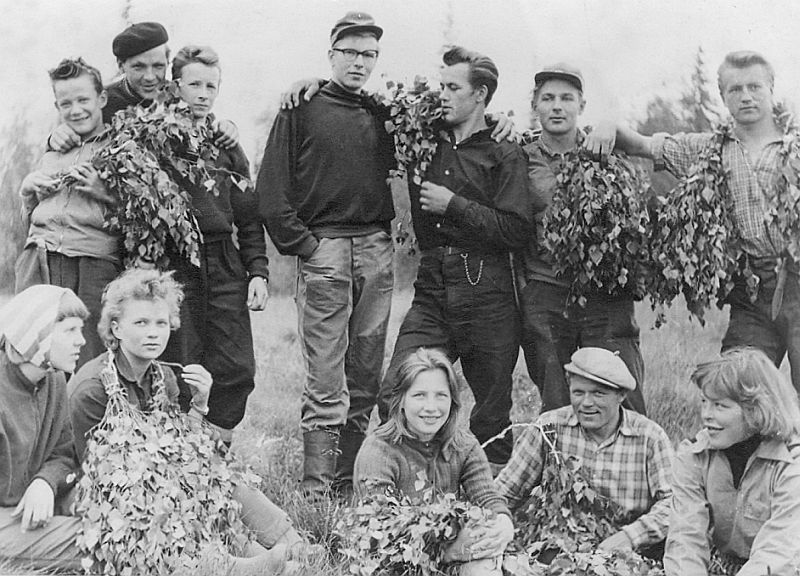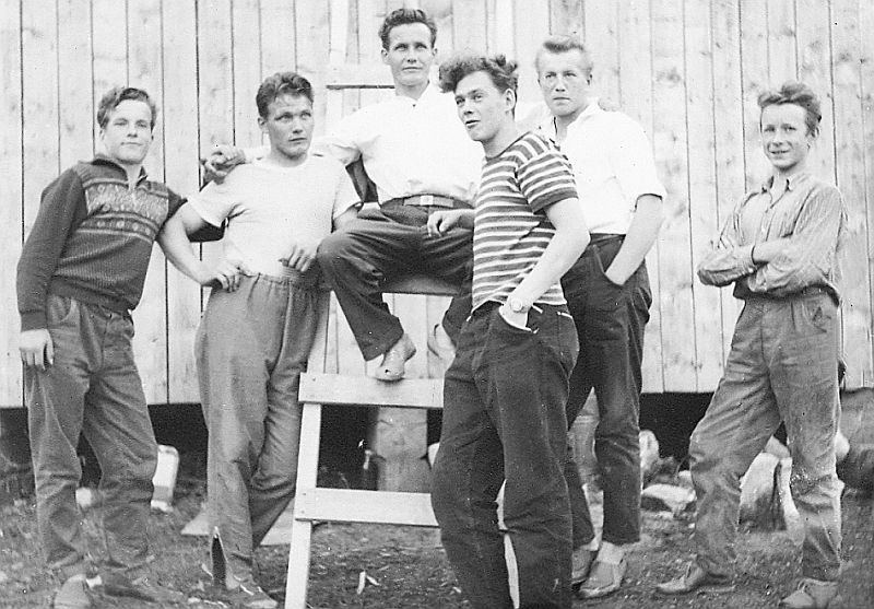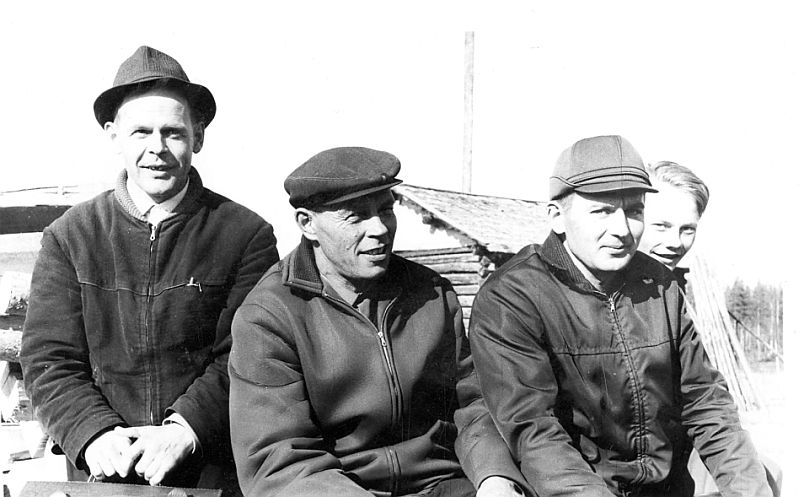 Seisomassa vasemmalta: Antti Saariniemi, Erkki Saariniemi, Kauko Nevala, Veikko Nevala, Seppo Saariniemi, Yrjö Saariniemi ja Esko Saariniemi.