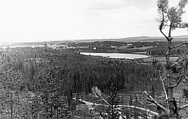 Näkymä keskikylälle Sarivaarasta. Miehet kulkivat leivän perässä Ruijan rannikkoa myöten. Pekkalan Peerin pojat Matti ja Pekka jäivät sille tielleen. Pekka nousi laivaan ja seilasi Amerikkaan ja saapui nuorikkonsa kanssa Galumetin kaivoskaupunkiin neljä vuotta Saijalta lähdön jälkeen 1870- luvulla. Pekan esimerkkiä seurasi moni saijalainen myöhempinä aikoina. |