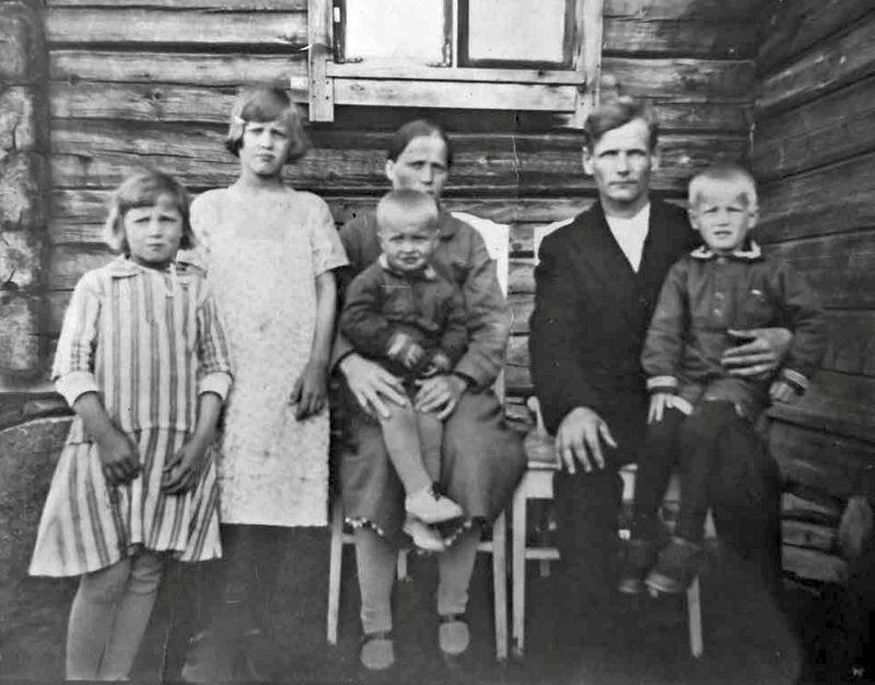 Alpi ja Kaisa Ylitalon perhe 1930-luvun alussa. Alpi oli Matti Heikki ja Reeta Liisa Ylitalon poika. Isompi tytär on Aini ja pienempi Helmi, nykyään Sinkkilä. Äidin sylissä on Ilpoja isän sylissä Osmo. Kuvan ottohetkellä ei aavistettu, kuinka lyhyeksi kohtalo oli määrännyt poikien elämän kaaren. Vuoden sisällä kuvan ottamisesta menehtyi äidin polvella istuva Ilpo. Isän polvella olevan Osmon elämä sammui keuhkokuumeen myötä kuudentoista vuoden iässä. Kauan ei saanut seistä takana näkyvä hirsitalokaan. Talvisodan syttyessä suomalaiset polttivat rakennuksen kylään tunkeutuneen vihollisen edestä. Myöhemmin nousi tilalle uusi Valorannan kotitalo. Perheeseen syntyi vielä kuvan oton jälkeen kolme tytärtä. Kuvan tyttäristä Aini kuoli hiljattain yli 90 vuoden ikään ehtineenä. Helmi Sinkkilä elää ja asuu Sallan kirkolla. |