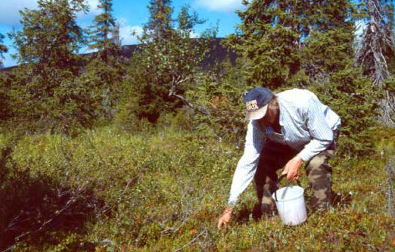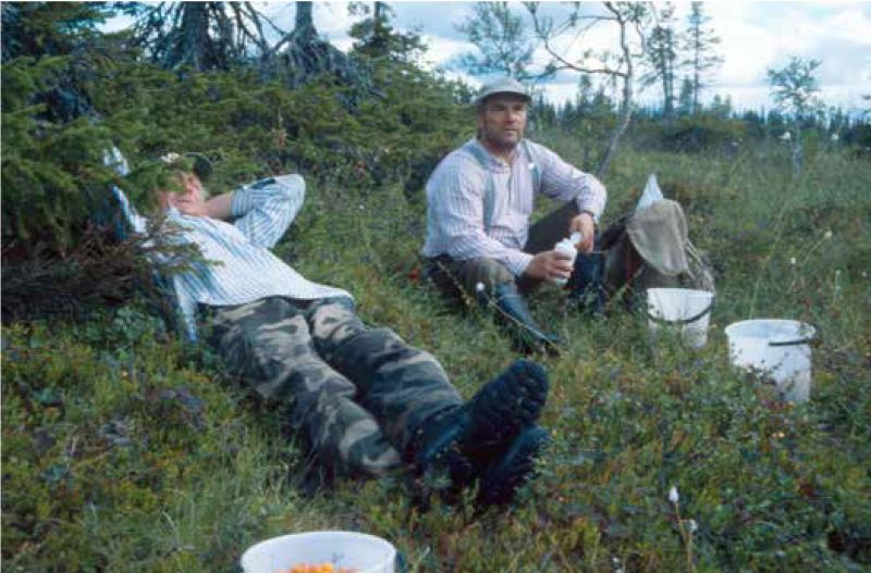 Martti Kallioinen ja Olli Saariniemi hillassa siellä salaisessa hillapaikassa Tuntsalla. Kuvaaja, mukana ollut Erkki Yrjänheikki. Kuvaaja, mukana ollut Erkki Yrjänheikki. |