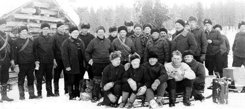 Pohjois-Sallan poromiehiä kämpällä.